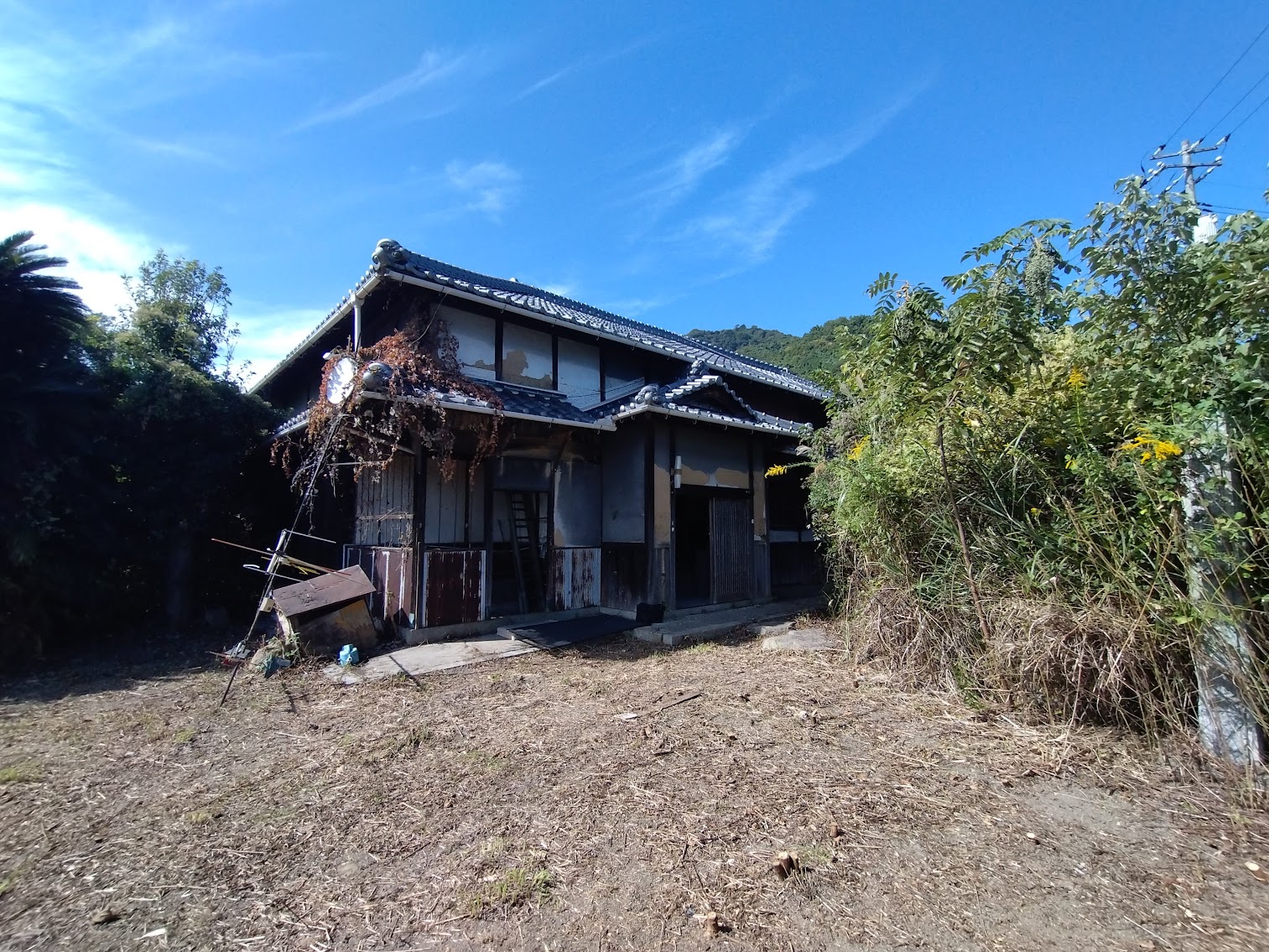 山裾に位置する物件で納屋や畑、庭といった広い土地に建つ物件です。