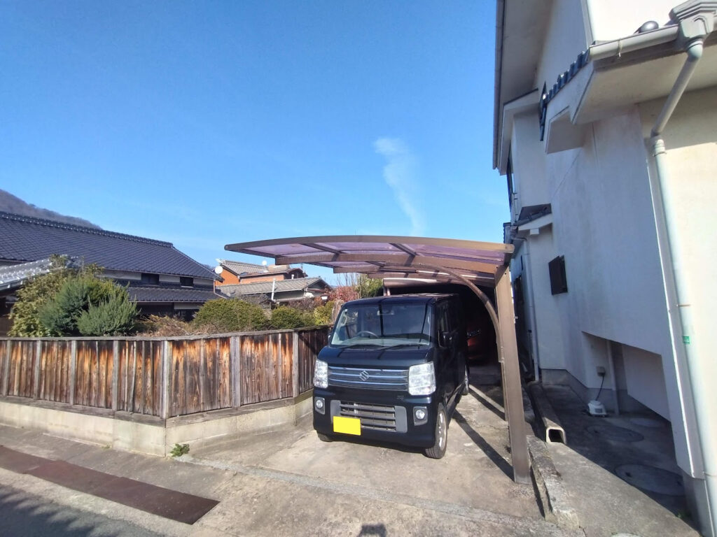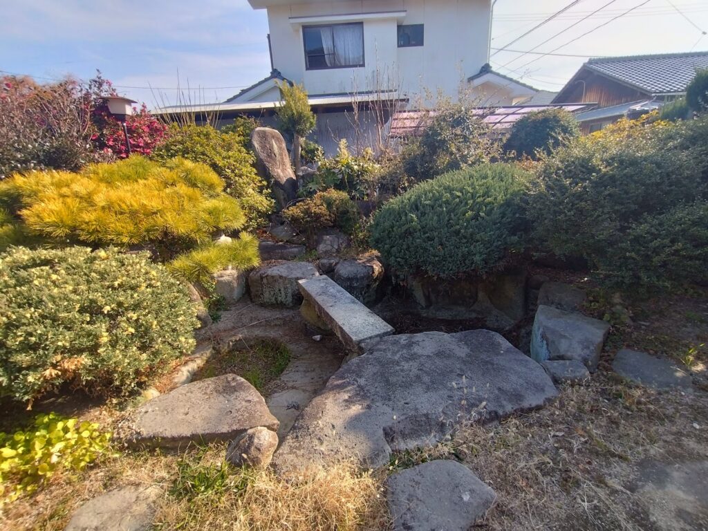 池を持つ庭と、畑もあり、2台駐車可能な駐車場も持つ物件となります。